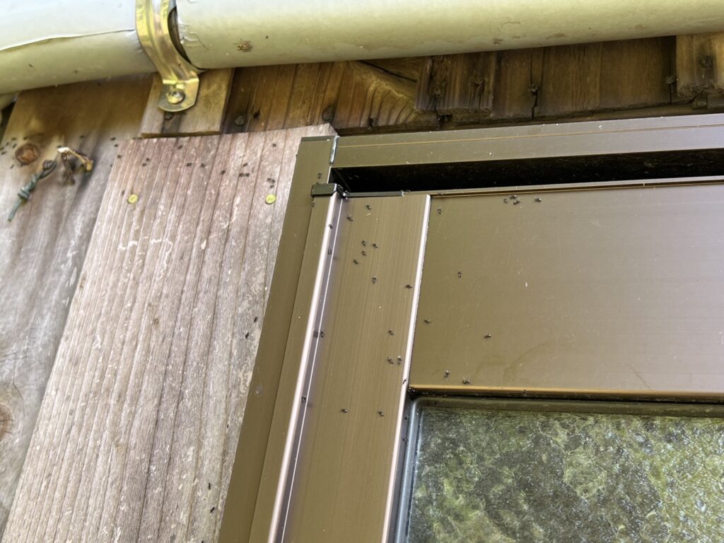 しかし、問題はここからだった。巡回による毒餌設置とスプレー散布で対策しているにもかかわらず、それでも屋内への侵入を許してしまったのである。侵入経路は、縁側サッシの、天井に近い窓のあたりだった。