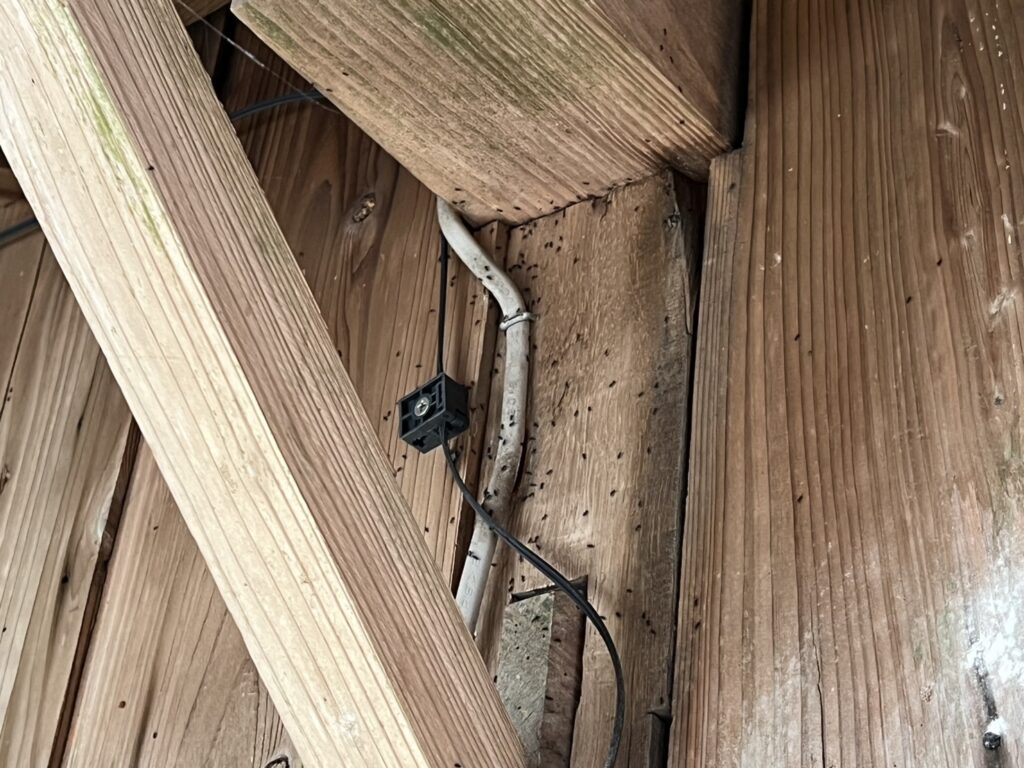 こうした部分は、アリが壁を伝って侵入しているため、毒餌の設置が難しい。「アリメツ」のようなシロップ状のものはなおさらである。日常的な見回りの中で、こうした部分にも注目してスプレーを噴射することになった。
