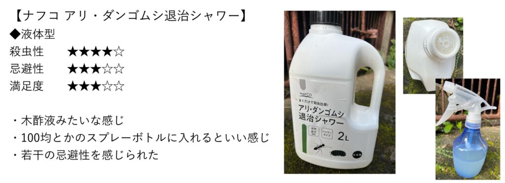 →今年は試せなかったが、巣穴に直接ぶち込んで巣を壊滅させるタイプの殺虫剤もある。行列の位置はだいたい決まっているので、これができるのがベストかもしれない。