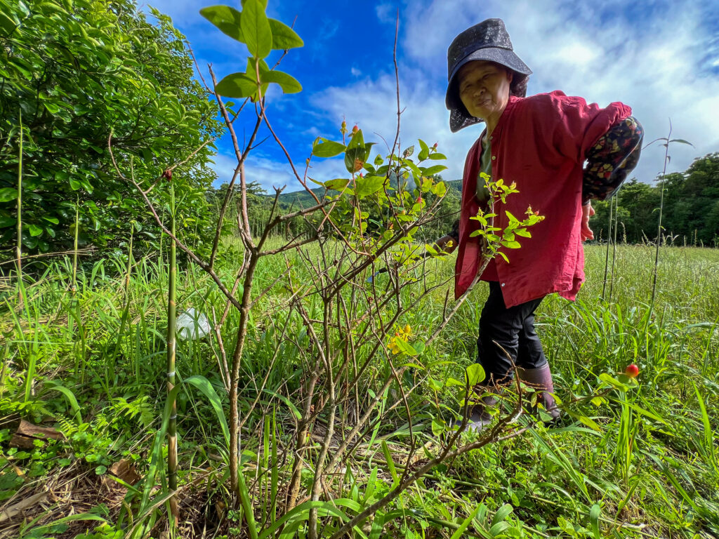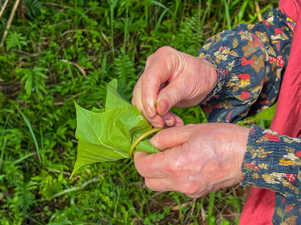 そんな幾美さんが、どのように山野草の収集や葉っぱの使い方をしているのか、現地を案内いただきながら教えていただいた。
