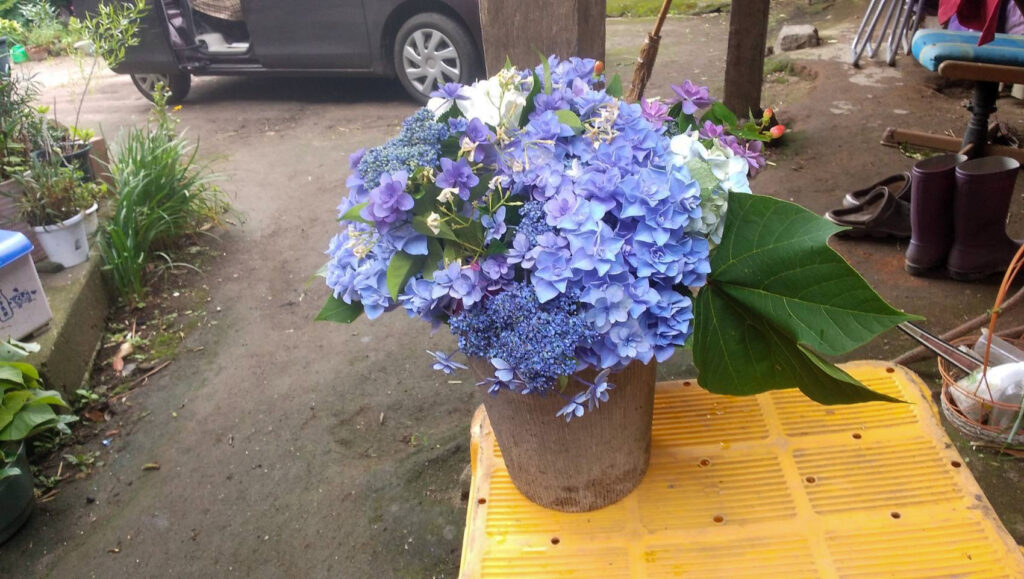 そして、普段の飲み会や集まりの場に、季節の花や山野草を使ったブーケを持ってきてくださったり、彩りとして葉っぱを使った料理を振る舞っているのを多く見てきた。幾美さんの参加する会合では、自然と場が華やぐ。料理も普段より美味しく感じる。四季の移ろいを視覚的に感じられると、気分も前向きになってくるものだと実感した。