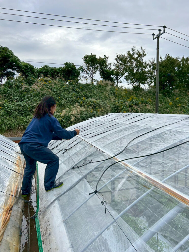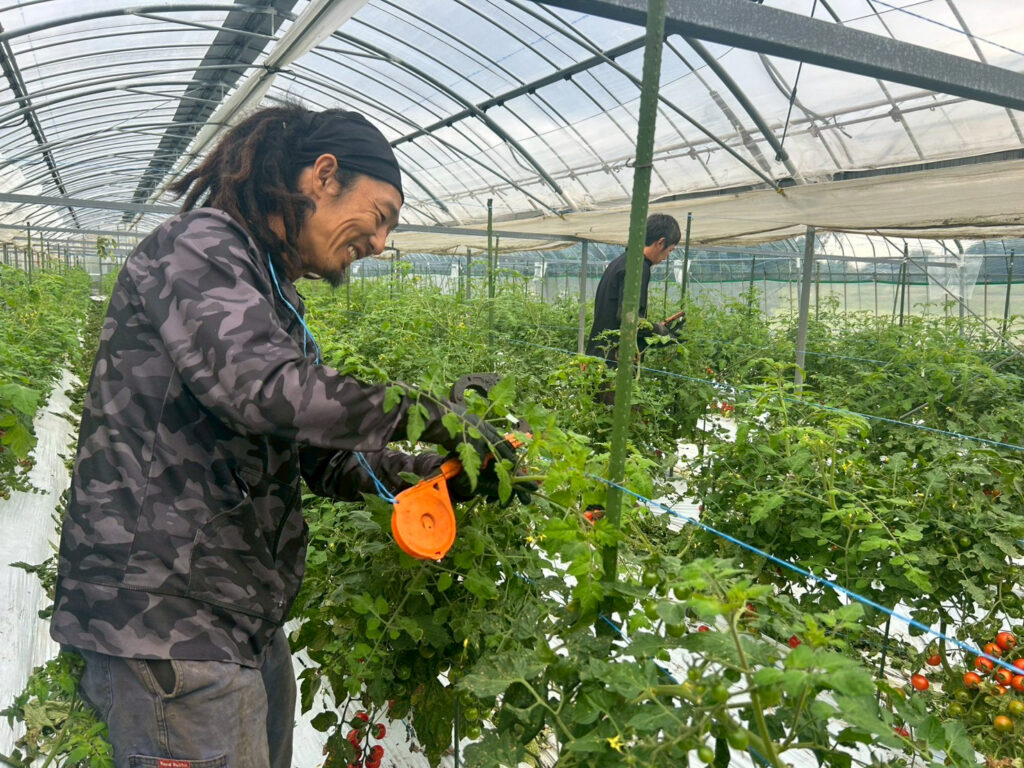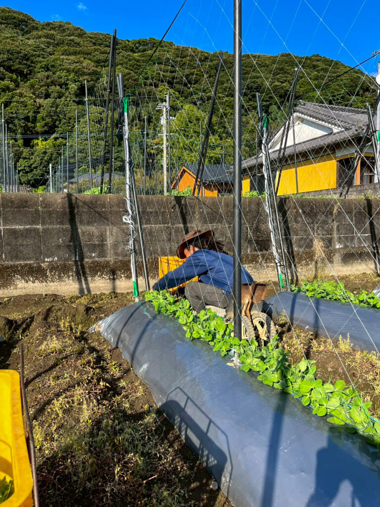 新規就農を目指す水野さんにとって、地域の農家のもとで働けるのは渡りに船。10月9日〜12月9日までの2ヶ月間、池之迫家(路地野菜・タバコ・米など)・富田家(バラ)・田淵家(ミニトマト)の3家庭でローテーションしながら働くことになりました。