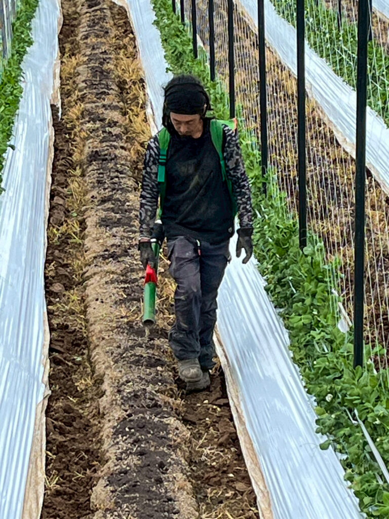 「パッションフルーツをやるにしても、地域によって農業のあり方は違いますし、まずは色々なやり方を知っておきたかったんです。スナップエンドウの露地栽培・バラとミニトマトの施設園芸など幅広いやり方を現地で学ぶことができ、実際の農家の働き方を肌で感じながら、もしものことがあったときのリカバリーの仕方もイメージできました!」と笑顔で語ります。